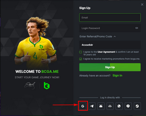 - Authorize Log in to your social page and authorize BC.Game to log in with your public profile. That will fill some of your registration details automatically.