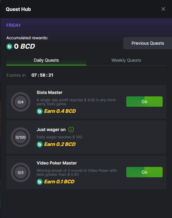 BC.Game has unveiled an innovative approach to elevate the gaming journey for its patrons by instituting daily and weekly missions. These missions are meticulously crafted to bestow rewards upon players for their engagement on the platform, presenting additional bonuses atop the customary game earnings.