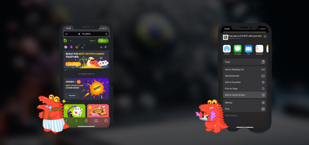 - Add to your home screen. Use Safari to visit the BC.Game website by entering its URL.