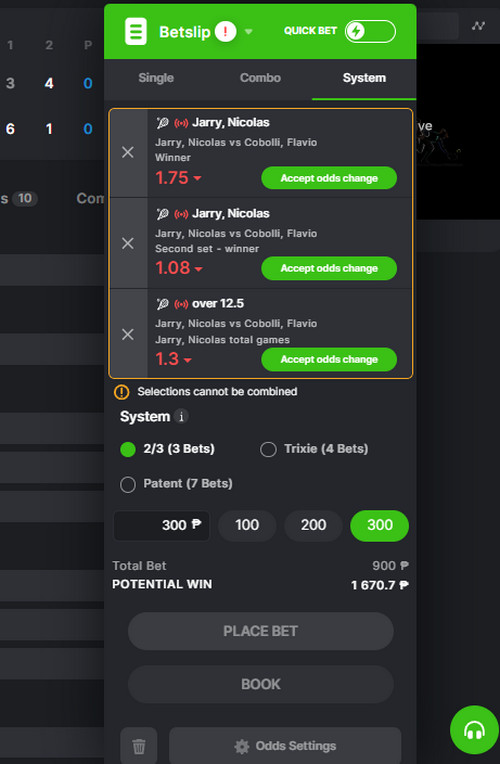 - 1 st set correct score. Bet on the score between the 1st-time set. This bet is more detailed in forecasting and, therefore, expertise, with much higher odds.